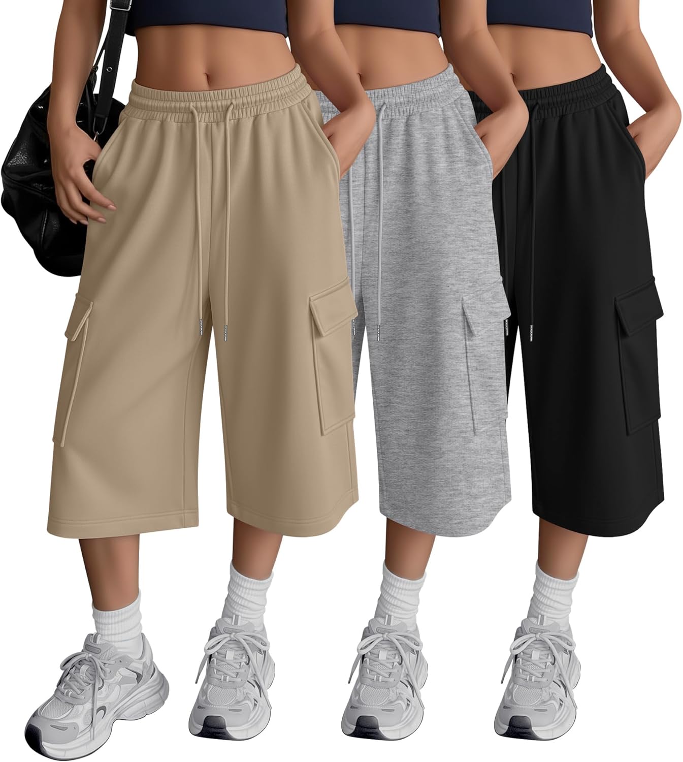 Features: The women's capri pants are practical and stylish. Please refer to the detailed size chart to choose the size that fits you for a comfortable and flattering fit. To keep these women's wide leg sweatpants in their color and shape, it is advised to handwash cold, wash separately, do not bleach. This maintains the clothing's texture, fit, and color vibrancy for longer. Specifications: Material: 75% Polyester, 25% Cotton Package includes: 3 x Women's oversize capri sweatpants Notes: Manual measurement, please allow slight errors on size. The color may exist a slight difference due to different screen displays