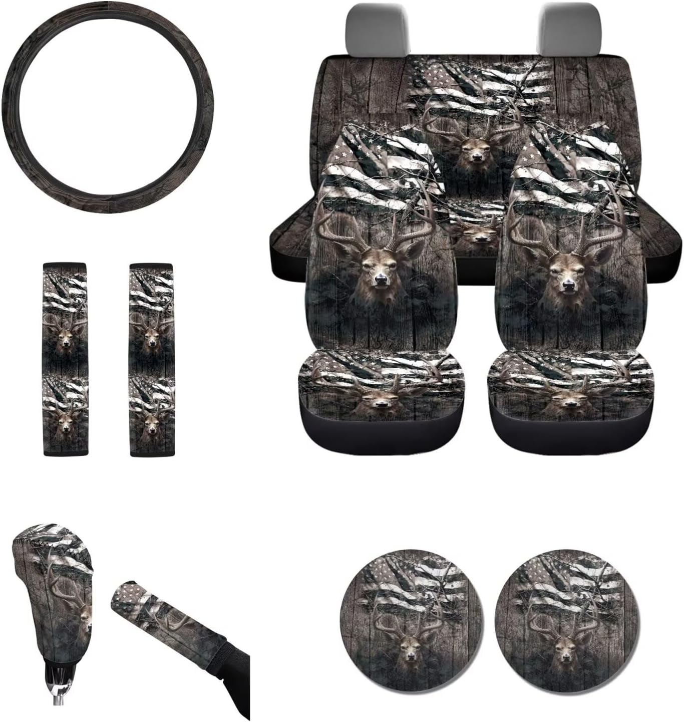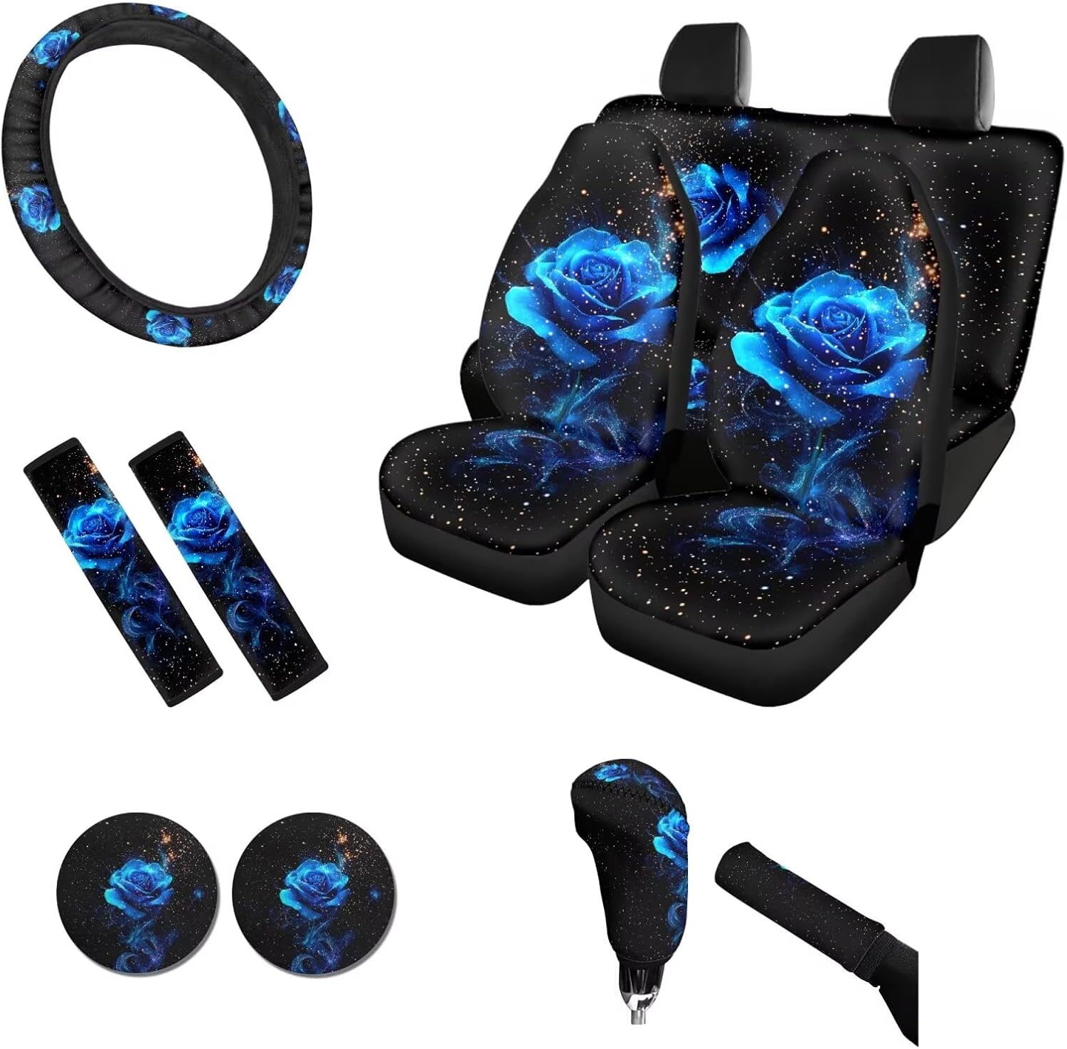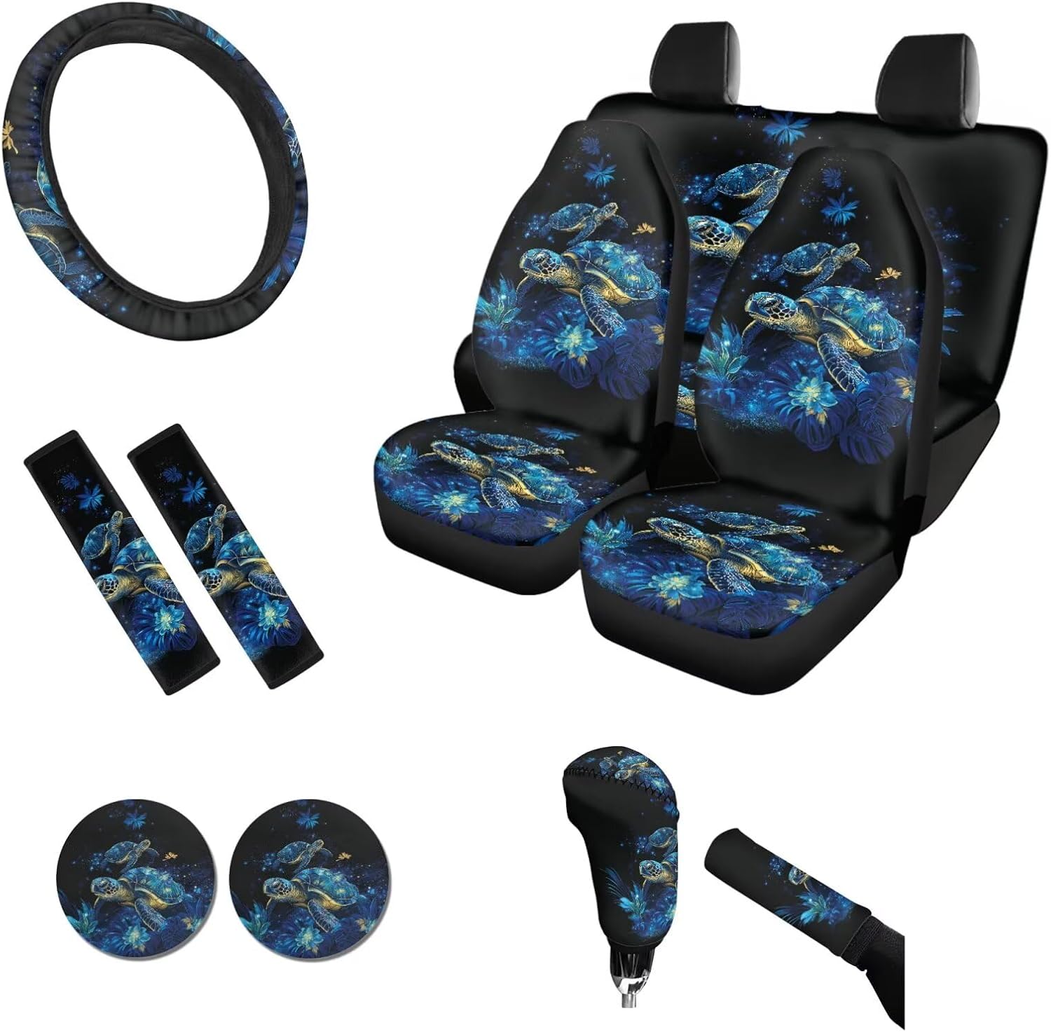 About Tomeusey Car Seat Cover Full Set 11 Pcs 🔸Made of comfortable and durable polyester material, it is elastic and can effectively protect the original car seat, reducing damage to the original car seats. 🔸Our seat covers set are easy to install and the cushion comes with elastic straps for easy installation and disassembly, aiming to protect your car seat from damage. 🔸The full set of seat covers is designed with 3D printing and fashionable and diverse theme patterns, making it the preferred decorative accessory for your car. 🔸The car seat cover set is fast to install, easy to disassemble, easy to clean, and dry. 🎁This is also a great Thanksgiving, Christmas, New Year, or birthday gift to give to your friends, colleagues, and family. 🔸Package includes: 4 x Car Seat Covers Set (2 front seat covers + 1 rear backrest cover + 1 rear bottom bench cover) 1 x Steering Wheel Cover 2 x Auto Seat Belt Cover 2 x PU Car Coaster 1 x Gear Lever Cover 1 x Hand Brake Cover 🔸【Washing Method】 It can be hand-washed & machine washable, do not soak for a long time. 🔸【Note】 Please kindly measure your car seats before purchase! Please contact us if you have any questions about the use of our product. 💡About Tomeusey Brand We are a company integrating production and sales. we provide a variety of color style products for you to choose, we are committed to bringing customers a new experience, and maximizing the experience of your life!